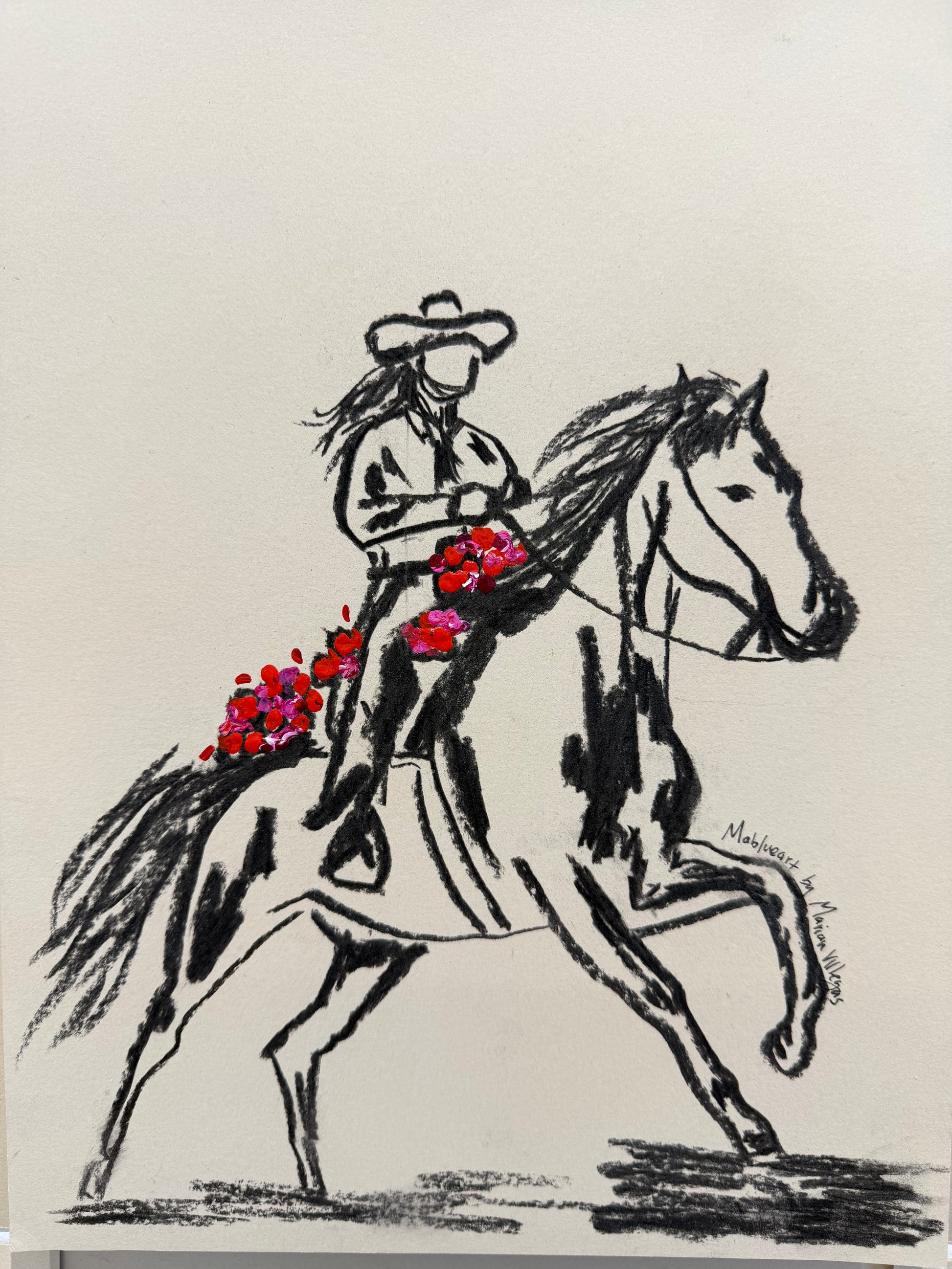 Each piece is part of the“Horses and Roses” sketches collection by MABLUEART.