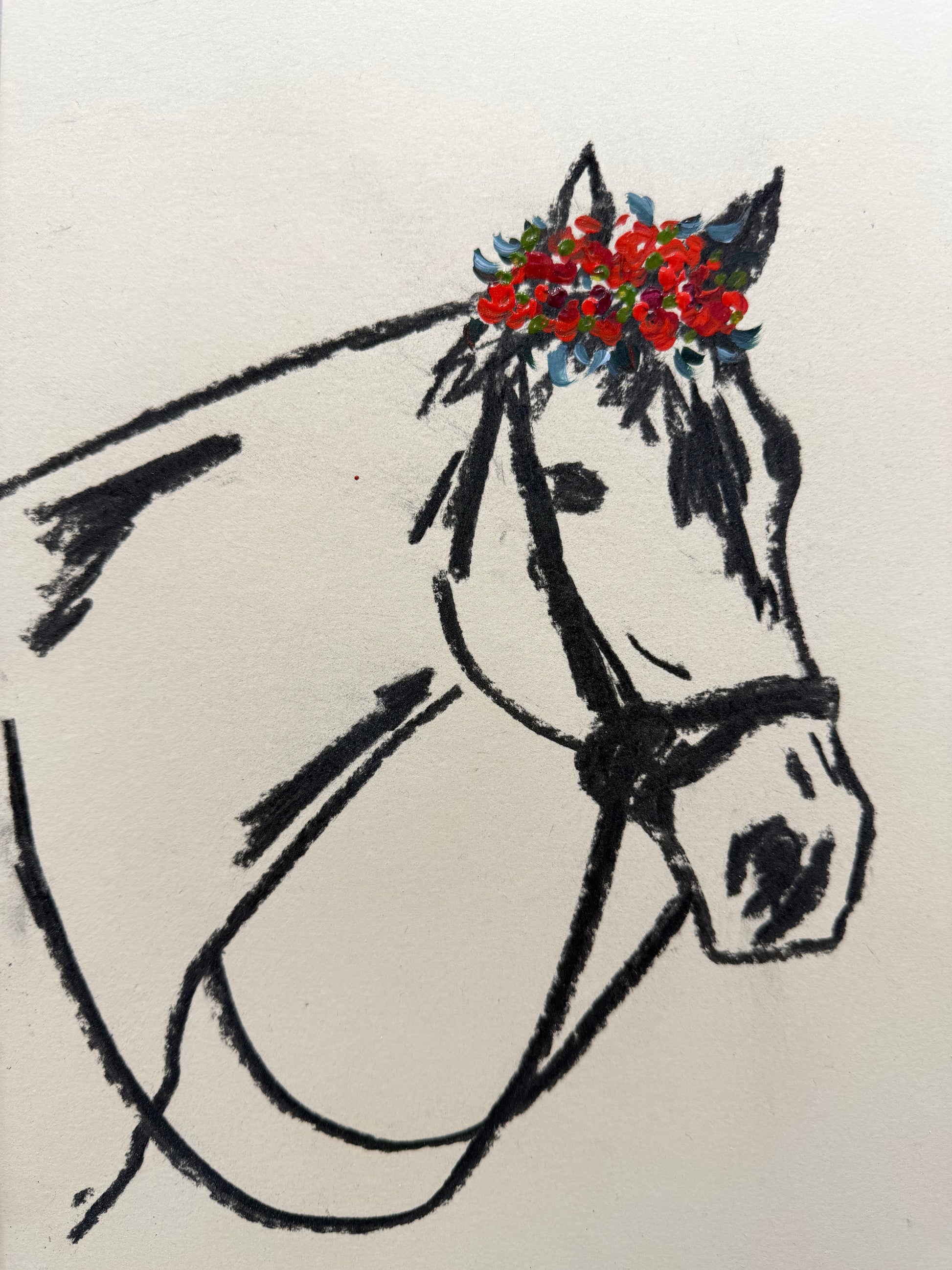 Each piece is part of the“Horses and Roses” sketches collection by MABLUEART.