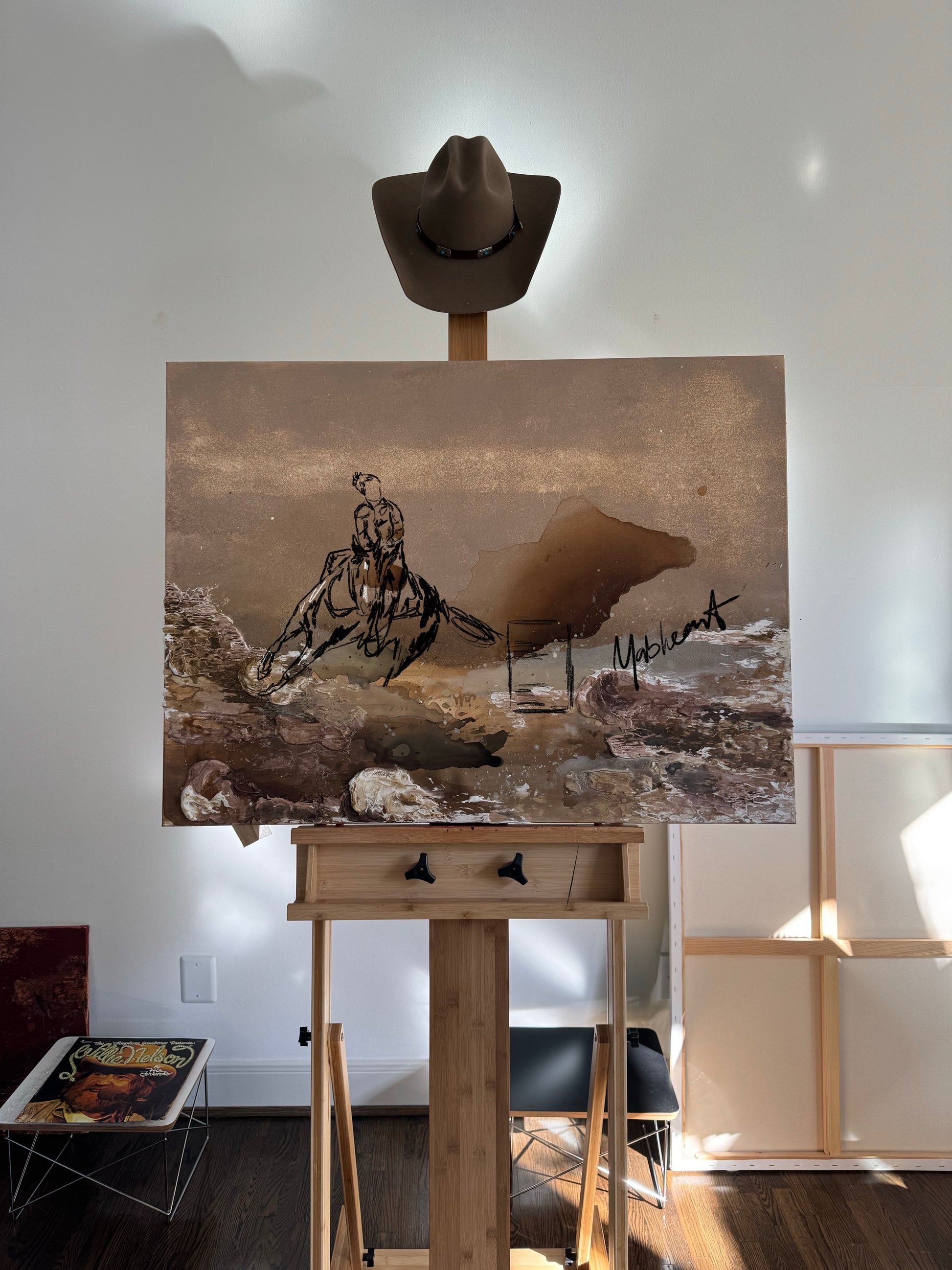 Original hand-painted mixed acrylic, and textured.Beige palette.