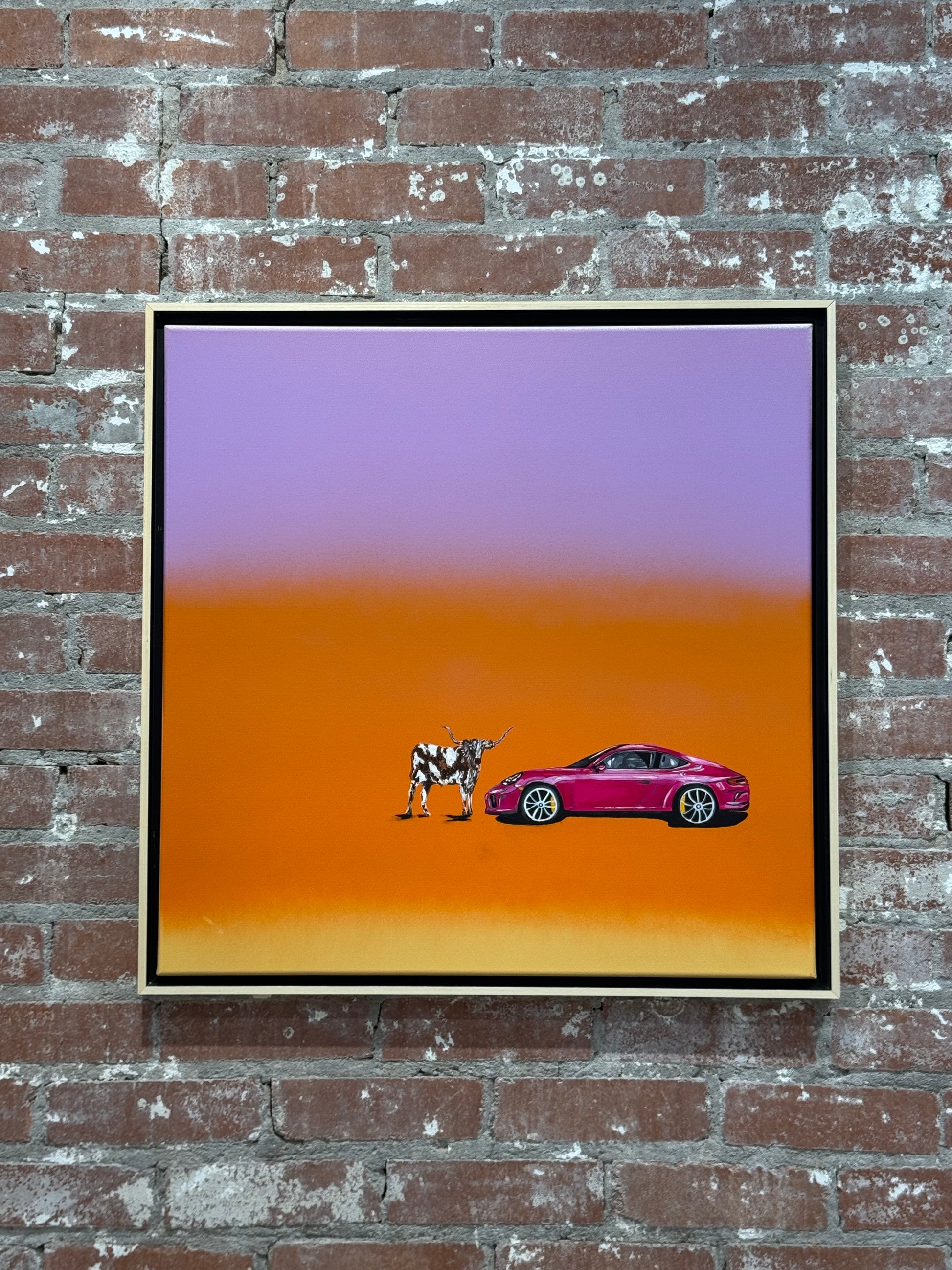 Original hand-painted mixed acrylic, natural wood frame