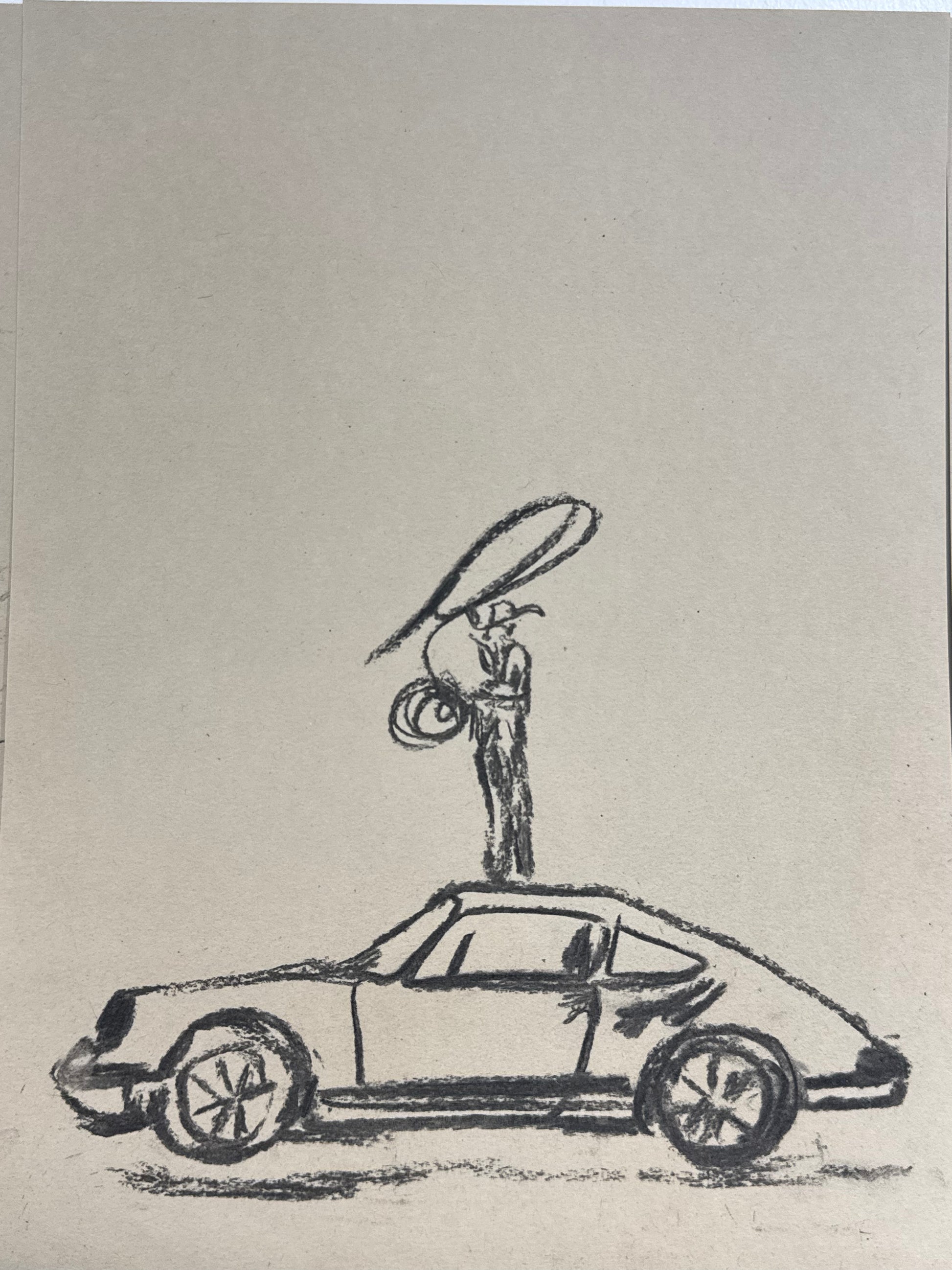 - Sketch made with charcoal on beige vintage paper.