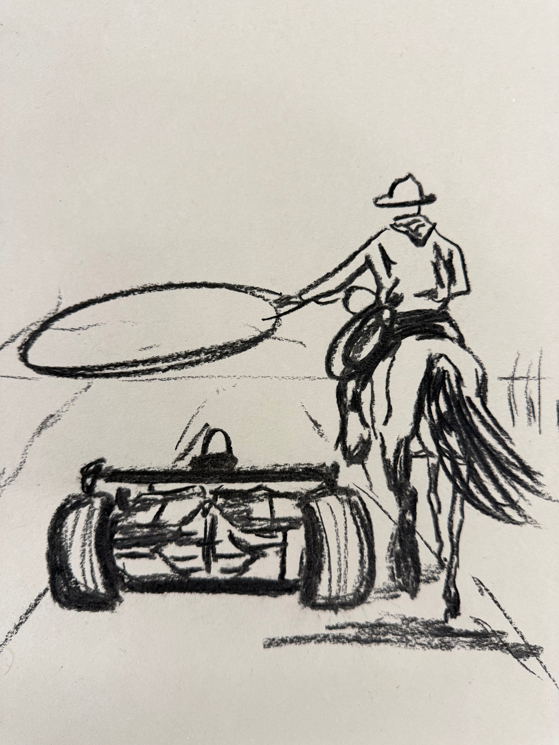 - Sketch made with charcoal on beige vintage paper.